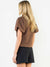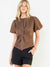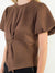 Polished yet playful, this suede twist front top is a chic staple for any wardrobe. It features a flattering gathered front detail, soft puff sleeves, and a modern, structured silhouette that pairs beautifully with trousers, skirts, or denim. The subtle stretch in the knit fabric ensures comfort without sacrificing style.
