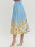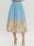 Fresh, feminine, and easy to style, this blue floral midi skirt brings effortless charm to warm-weather dressing. Designed with a flattering high-rise silhouette, it features a soft gathered waist and a vibrant floral border print that adds color and movement without overwhelming.