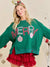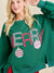 Celebrate the holiday season in style with this playful and cozy oversized top. The rich green backdrop sets the stage for bold patchwork “MERRY” lettering in a mix of gingham and classic red plaid. Two cheerful ornament appliqués dangle from the design, adding a fun and festive touch perfect for Christmas gatherings, parties, or family photos.