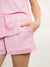 Meet your new favorite sleep shorts in a timeless pink pinstripe. Designed in a relaxed silhouette with a roomy fit, these shorts combine polished details with all-day comfort. Crisp white piping and functional side pockets add a tailored touch, while the elastic waistband keeps the fit easy and flattering — no drawstring required.