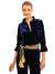 Add a touch of luxe to your wardrobe with the Gretchen Scott Navy Velvet Ruffle Blouse—a sophisticated statement top perfect for the holiday season and beyond. Crafted from sumptuous velvet with a hint of stretch, this blouse offers both comfort and elegance. The elevated silhouette features a ruffled mock neckline and gently puffed 3/4 sleeves finished with tiered ruffle cuffs and gold-tone button accents.