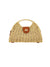Designed with a structured silhouette and subtle shimmer woven throughout, it features a top handle for a ladylike carry and a detachable leather strap for hands-free convenience. The gold turn-lock closure adds a refined touch, making it just as appropriate for brunch as it is for beach vacations or summer weddings.
