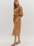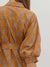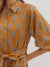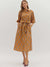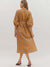 Effortlessly elegant and endlessly versatile, this botanical print midi dress from Entro is a must-have for your wardrobe. Crafted from 100% cotton, it features a rich ochre base adorned with soft blue floral motifs that look like embroidery for a timeless, vintage-inspired look. The classic shirt collar and button-down front bring tailored structure, while the elbow-length sleeves with buttoned cuffs add a refined finish.