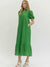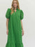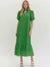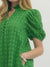 This green eyelet midi dress brings a fresh pop of color in the most classic way. Featuring short puff sleeves, a softly ruffled mock neckline, and a button-front design, it’s feminine without feeling fussy. The ruffle hem adds movement, while side pockets make it as wearable as it is pretty.