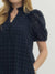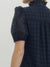 This navy eyelet midi dress from Entro is one of those forever pieces—the kind you’ll reach for season after season. Designed with short puff sleeves and a ruffled mock neckline, it strikes the perfect balance between polished and easy. The button-front detail and ruffle hem add subtle charm, while side pockets (yes, pockets) keep it practical.