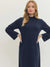 Solid mock neck long sleeve midi dress in Navy