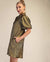 Turn up the shine in this show-stopping Ruffle V-Neck Puff Sleeve Mini Dress, designed to make an entrance. Featuring a glamorous metallic gold finish with fine pleating throughout, this dress radiates movement and modern elegance. The subtle shimmer catches the light from every angle—perfect for holiday parties, nights out, or special occasions.