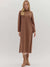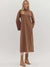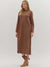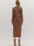 Solid Brown Mock Neck Long Sleeve Midi Dress
