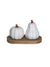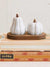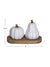 Add a charming touch to your fall table with these adorable pumpkin-shaped salt and pepper shakers. Made from stoneware with a reactive rustic glaze, each shaker features a unique gourd and pumpkin design. Nestled on a natural wood tray, this set is the perfect blend of farmhouse style and seasonal charm.