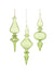 Add a touch of whimsical elegance to your holiday décor with these Green Transparent Finial Ornaments by Raz Imports. Crafted from light green glass with beautifully ribbed detailing, each finial showcases a unique silhouette—tall, tapered, or rounded—with delicate transparency that catches the glow of your tree lights.