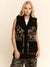 Add a touch of luxe to your layering with this Black Jacquard Faux Fur Vest. Featuring a richly textured jacquard floral pattern and plush faux fur along the collar, placket, and oversized front pockets, this statement vest blends cozy comfort with elevated design.
