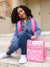Pink nylon exterior with clear vinyl filled with Pink Party confetti