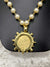 - Pendant: Small vintage-style coin with decorative gold bezel frame