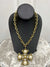 Suspended from a substantial antique-style gold link chain, this necklace instantly elevates everything from a simple tee to a dressy evening look.