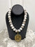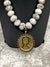 A striking blend of vintage charm and modern statement style, the Yochi NY Vintage White Mix Beaded Silhouette Coin Necklace features oversized marbled white beads paired with an ornate gold-tone silhouette coin pendant. The neutral white and soft gray swirls in each bead create natural variation, giving every necklace a one-of-a-kind look, while the antique-inspired coin adds bold character and timeless appeal.
