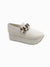 Crafted from soft microsuede, this closed-toe slip-on features a bold tortoise chain accent for a polished touch. The cushioned insole and wedge platform provide comfortable support while giving you subtle height. Easy to slip on and easy to style, this neutral ivory shade pairs beautifully with denim, dresses, and tailored pieces alike.