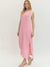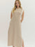 Functional side pockets bring everyday practicality, and the sleeveless cut keeps it breezy and versatile for layering with a denim jacket or cardigan when needed. Non-sheer and unlined, this maxi is breathable and ready for warm weather.