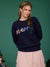 Spread some Christmas cheer in this Merry Tinsel Graphic Sweater by Blu Pepper! Crafted in a soft navy knit, this festive pullover features a playful multicolor “Merry” graphic in textured tinsel lettering that brings the perfect touch of sparkle to your holiday wardrobe. With its crew neckline, drop shoulder design, and relaxed fit, it’s as comfy as it is cute — ideal for everything from cookie baking to gift wrapping.