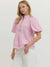 Designed with flattering puff sleeves and a tailored silhouette, this top pairs beautifully with white denim, skirts, or tailored shorts. The lightweight woven fabric keeps it comfortable for warm days while still looking crisp and polished. A subtle peplum-style hem adds a feminine finish that makes this piece feel extra special.
