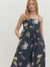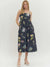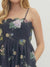Black floral print sleeveless midi dress