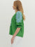 • Solid green woven top with light blue embroidery