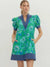 Fresh, feminine, and effortlessly polished, this green floral mini dress by Entro is the kind of piece you’ll reach for again and again. Featuring a vibrant floral print with a tailored stitch-accent contrast band at the neckline, sleeves, and hem, this dress blends classic structure with playful charm. The short puff sleeves add soft volume, while the easy pullover style keeps it comfortable and flattering.