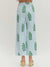 • Green floral print on subtle blue vertical stripe background
