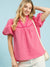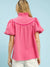 A delicate ruffle stand collar frames the neckline beautifully, and the puff short sleeves create that timeless, feminine silhouette we all know and love. Easy to dress up or down, this is the kind of top that works just as well with crisp white denim as it does with your favorite tailored shorts.