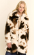 Make a bold entrance in this luxe tricolor faux fur coat, designed to turn heads while keeping you cozy. Featuring a striking cowhide-inspired print in rich neutral tones—ivory, chestnut, and espresso—this plush coat brings tactile luxury and fashion-forward edge to any outfit.